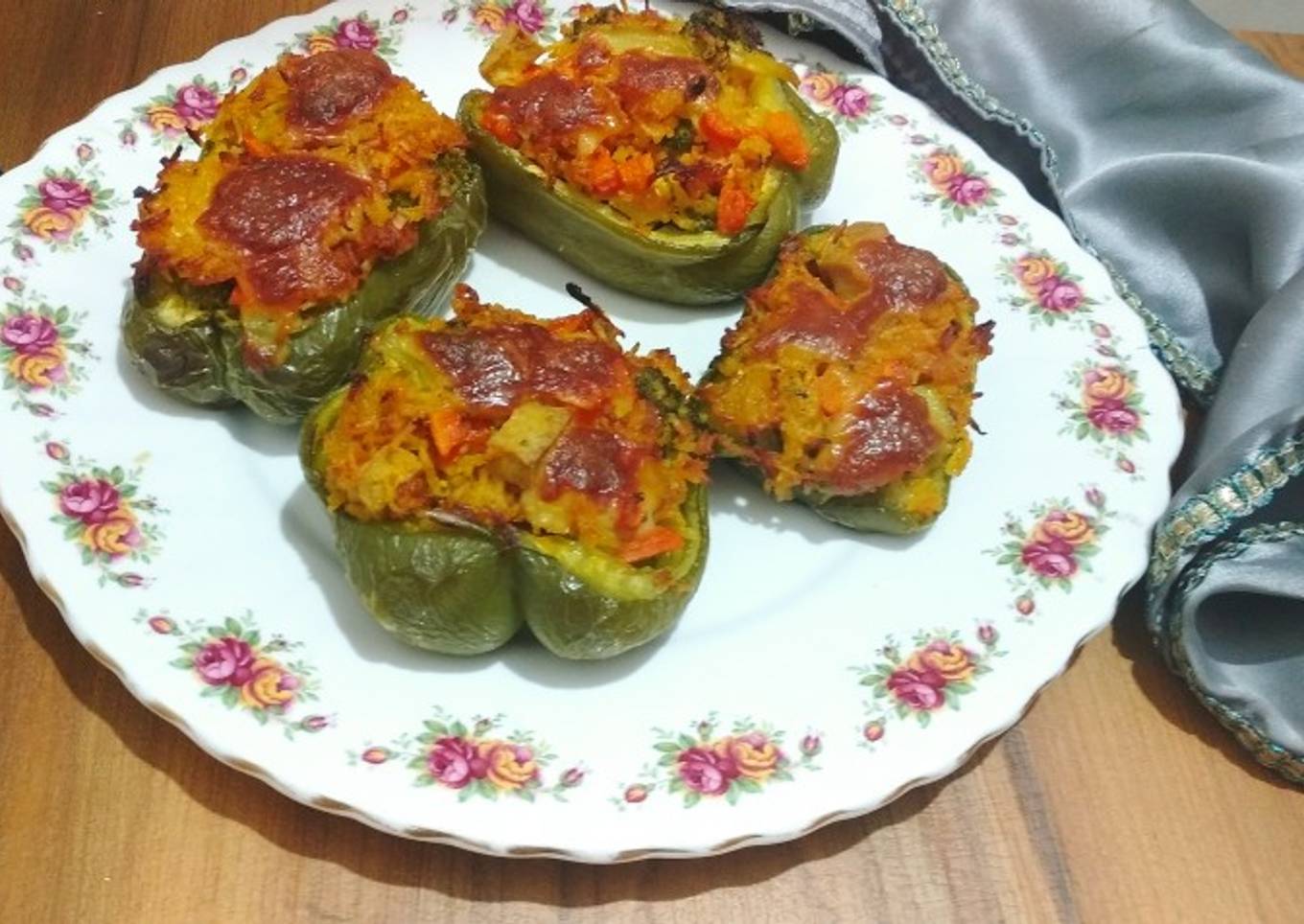 - De seed capsicum stuff with rice mixture grease baking try place capsicum grate cheese and bake it in the preheated oven for 15 to 20 minutes