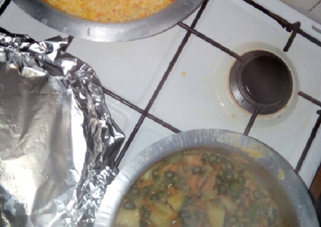 - Boil 4cups of water together with rice and add some oil and pinch of salt. Let it cook. When water reduces, reduce the heat and cover with aluminium foil and let it cook slowly. You may add food colour at this point sparingly.