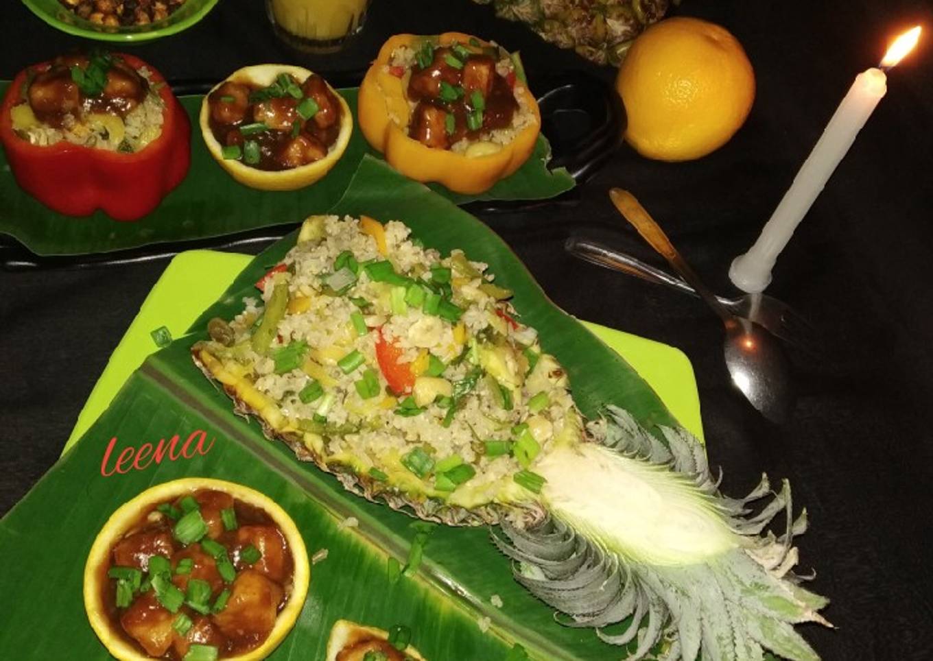 - Stuff the pineapple shells with the rice.