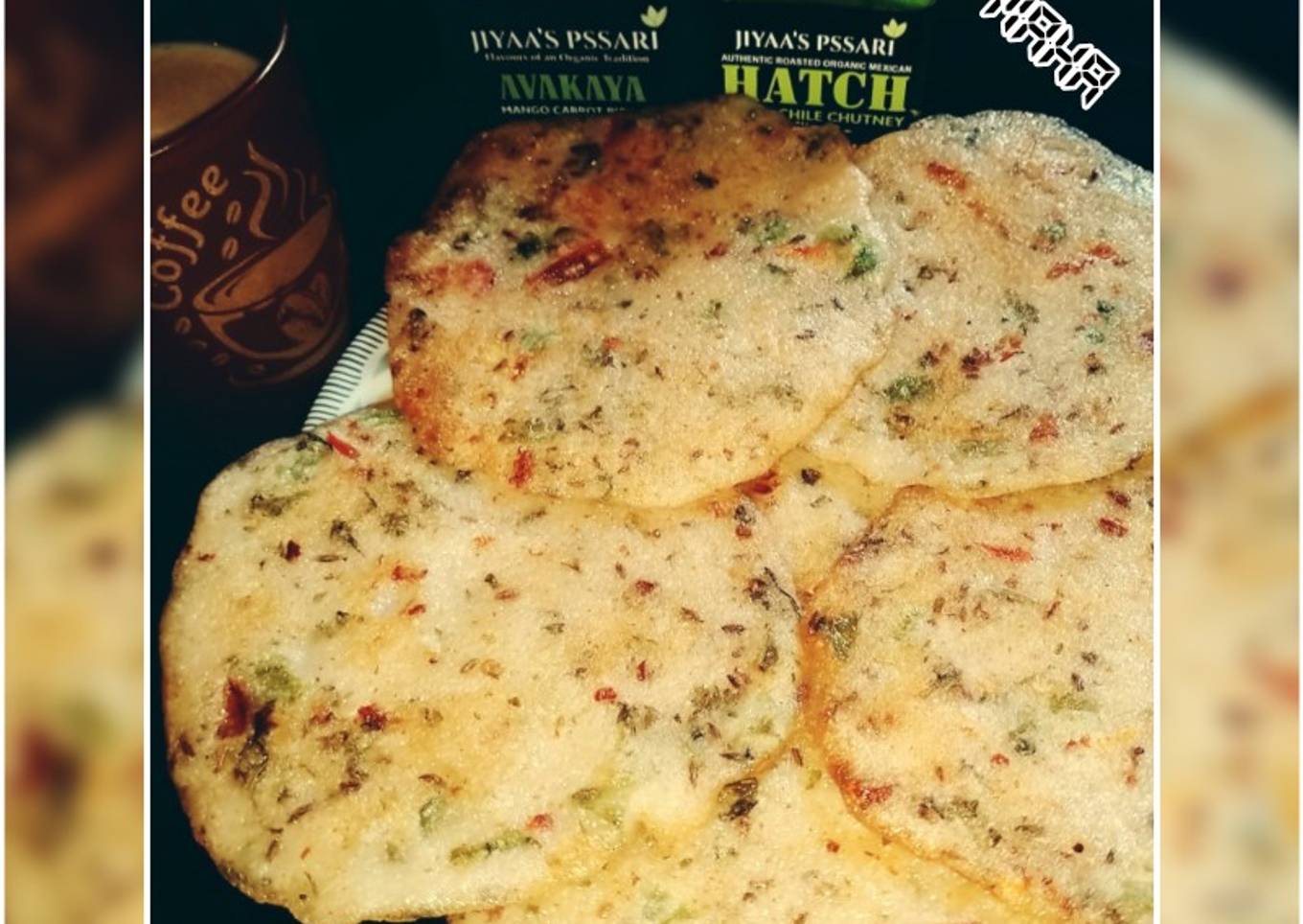 I've used Red ,Green & white colour. Rice pan cake is best option for breakfast and as a snack as well . You can serve it with pickle , green chutney & tea.